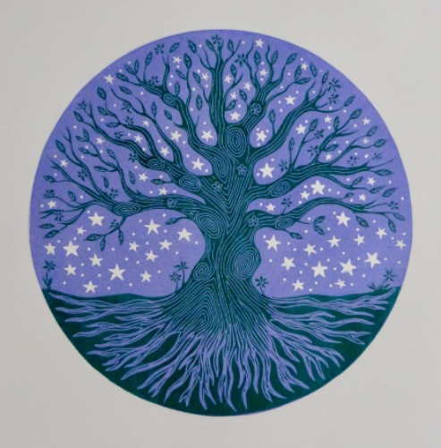 Kate had five prints selected for the Derby Print Open 2024, including 'Tree of Stars' shown here.